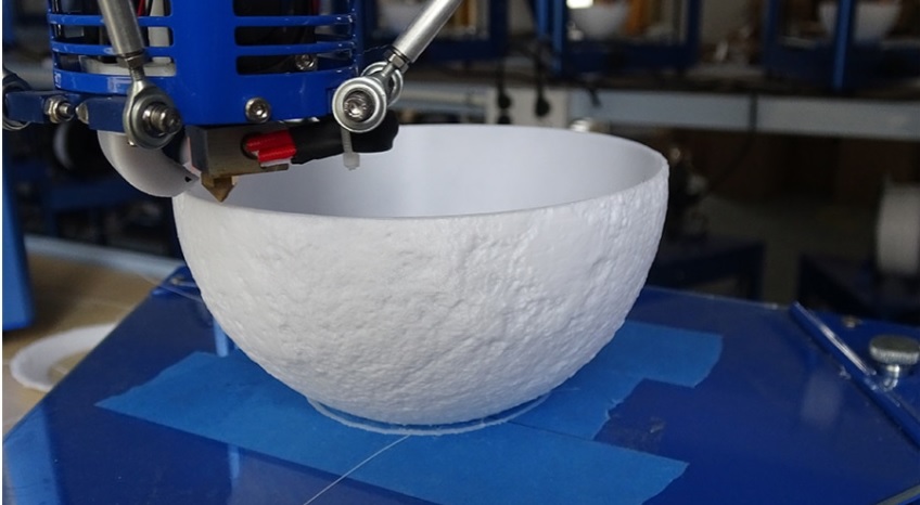 תמונת ליטופן כדורית בצורת ירח מוארת , מודפסת באמצעות מדפסת תלת מימד .